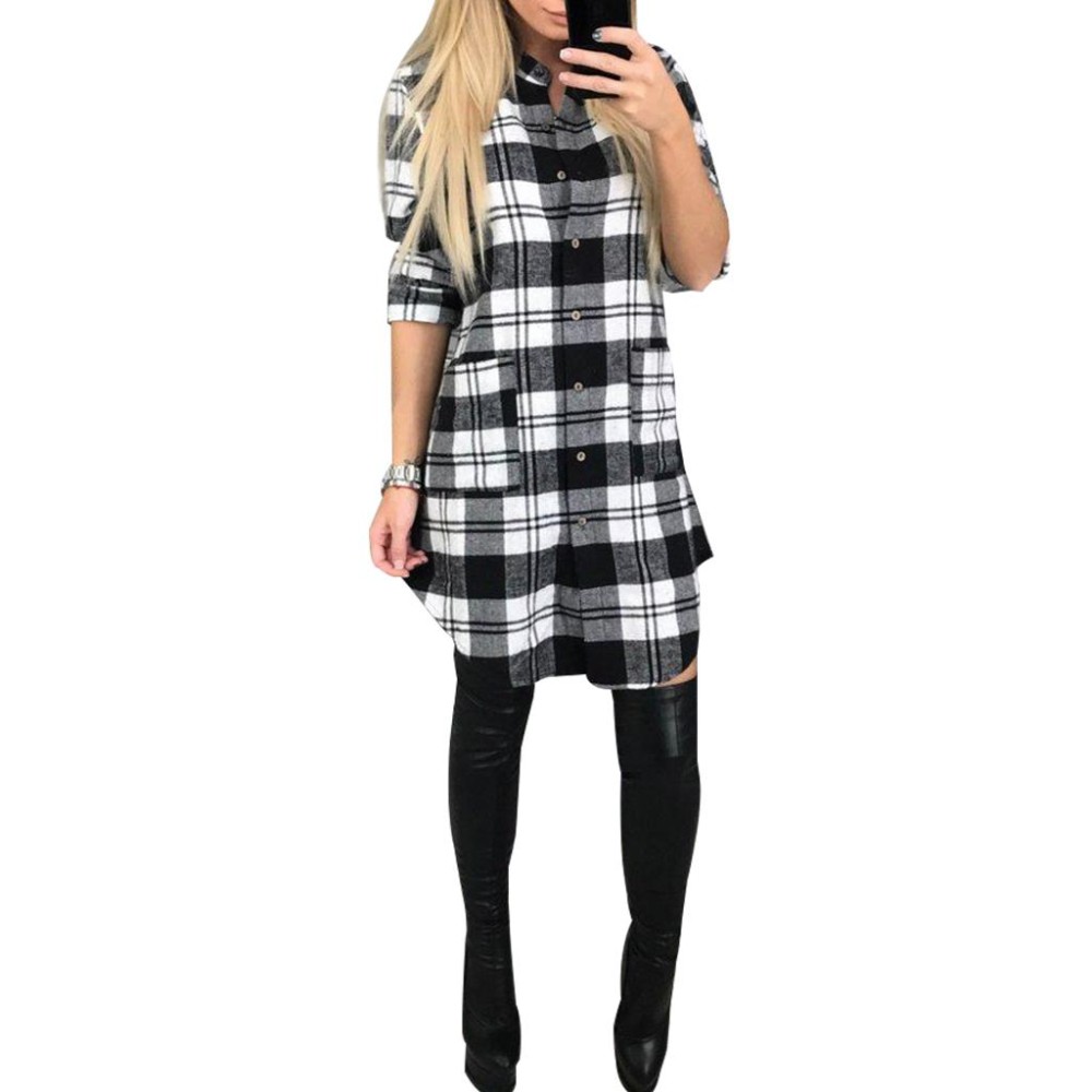 Produk Yang direkomendasikan terkait Wanita Tops Girl Lengan Panjang Kotak-kotak Kasual Baju Kemeja Berkancing Atasan dengan Saku-Internasional