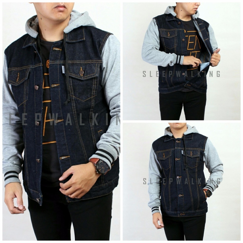 Seller Produk SW JAKET JEANS HITAM PRIA HOODIE ABU