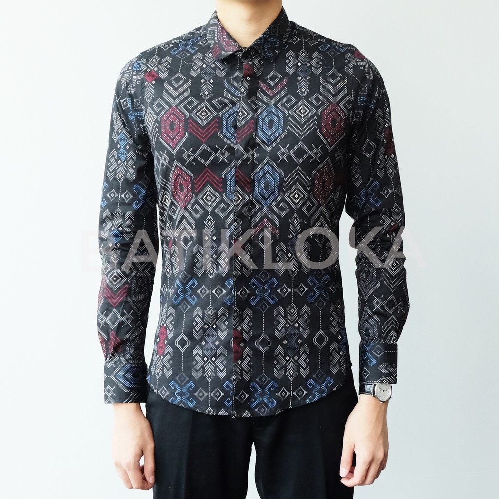 Promo MenarikBATIKLOKA Kemeja Batik Songket Pria Premium SLIM FIT Black- 01001 ayo segera dibeli