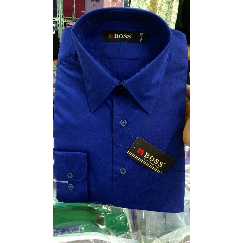 Seller [Fashion] kemeja pria BOSS biru elektrik biru tua lengan panjang reguler fit