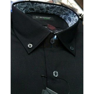 Penjual [Fashion] Termodis!!!!! Kemeja Pria Alisan Slimfit Hitam Dobby Ulir Miring Kombinasi Batik