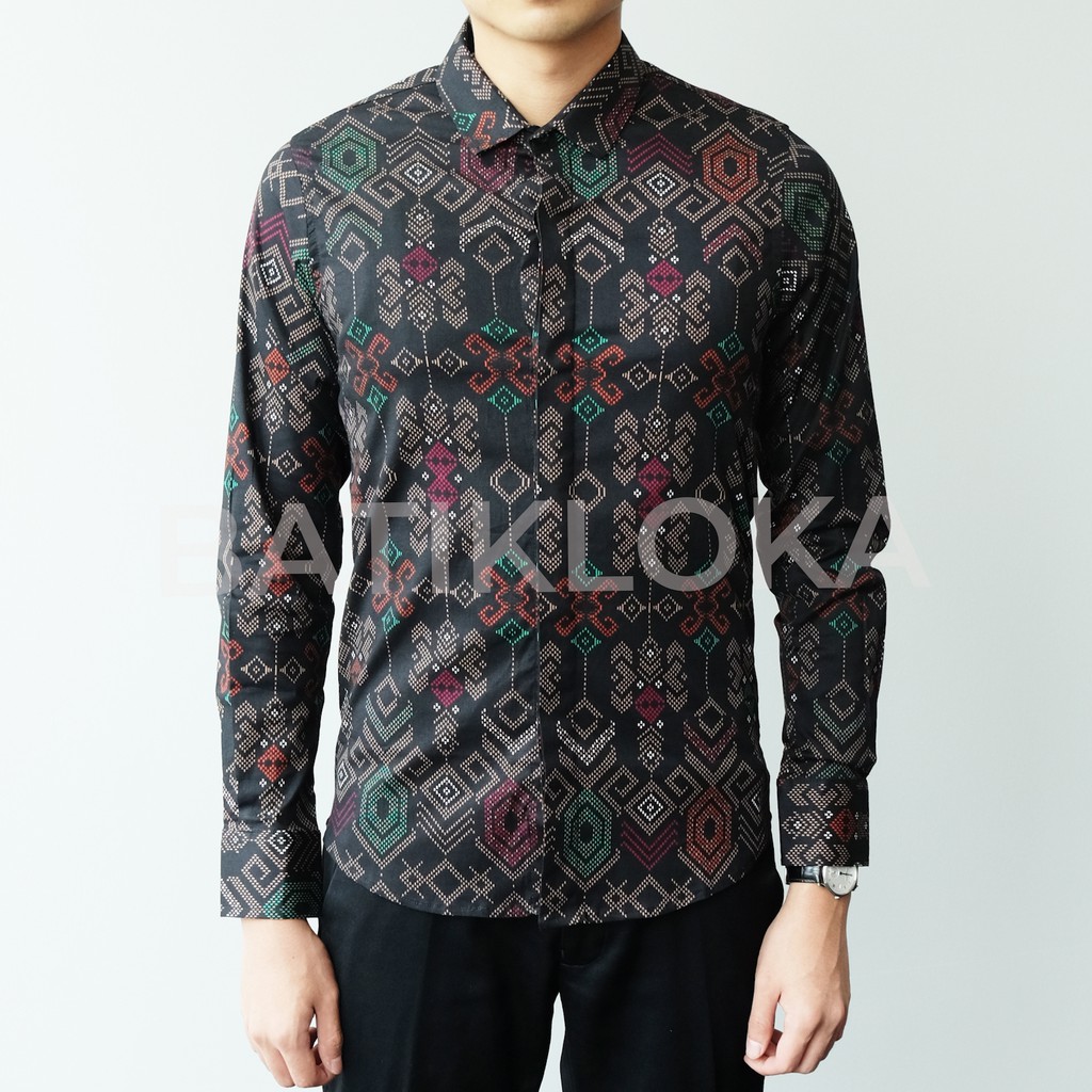 Promo MenarikBATIKLOKA Kemeja Batik Songket Pria Premium SLIM FIT Dark Brown - 01004 sayang jika tidak dibeli