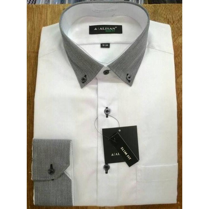 Produk Yang direkomendasikan terkait Fashion Pria - Kemeja Pria Alisan Putih Dobby Diagonal Panjang Slimft Kombinasi Abu