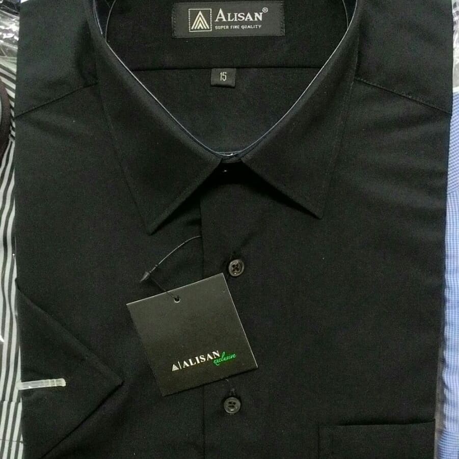Koleksi Foto Produk Alisan Kemeja Pria Pendek Hitam Reguler Khusus Jumbo XXL 16.5 17 17.5 - Hitam, XXL