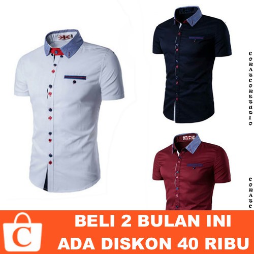 Promo DiskonM L XL - Kemeja Pria Polos Lengan Pendek Saku Kerah Kancing Ganda PUTIH BIRU MERAH - CORATCORETUDIO ayo segera diamankan