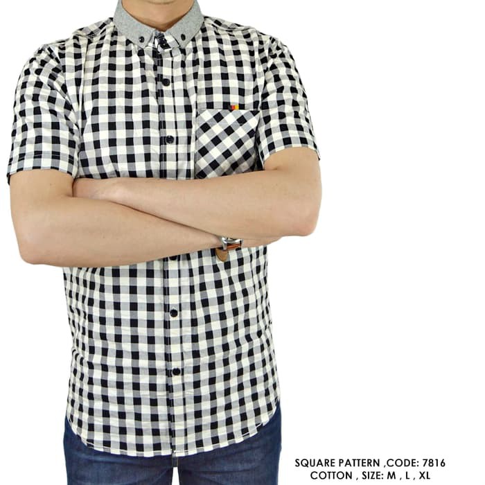 Penawaran Murah8 WARNA 6 UKURAN - Kemeja Pria Hem Cowok Lengan Pendek Polos PUTIH X HITAM - CORATCORETUDIO ayo segera dibeli