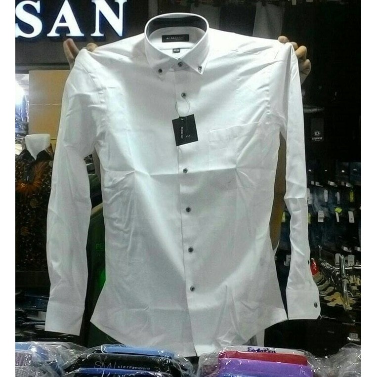 Penawaran Murah New Stock. Kemeja Pria Alisan Panjang Slimfit Putih Kombinasi Hitam Kerah Dalam - Putih, S sebaiknya diambil