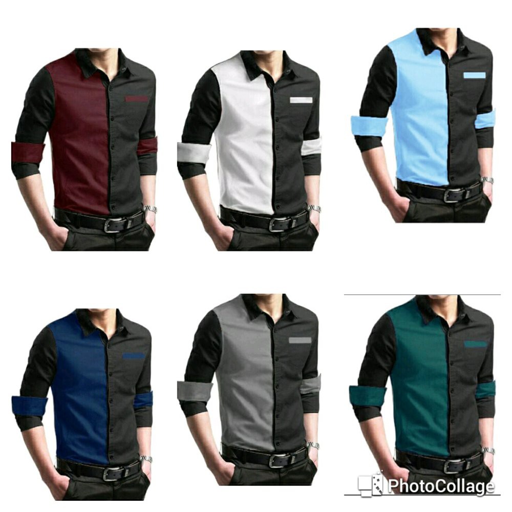 Foto - Foto Produk Ini Saja Kemeja pria slim fit combi list warna putih, motif kantong jas P_043 - Putih Hot Promo