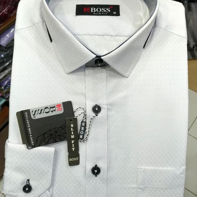Penawaran MurahBEST SELER BOSS KEMEJA PRIA PANJANG SLIMFIT PUTIH DOBBY KATUN CHESS LIST HITAM ayo segera dibeli
