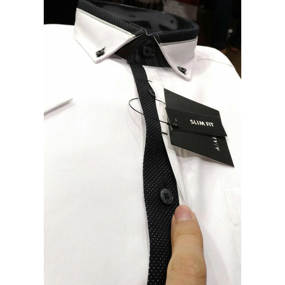Foto - Foto Produk Ljm Kemeja Pria Alisan Slimfit Pendek Putih Semi Formal Klep Terbuka Hitam - Putih, S Pir