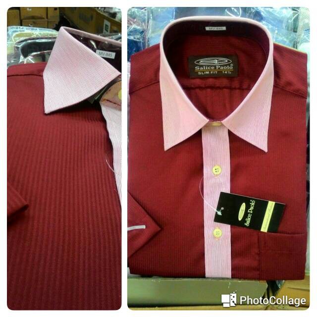 Promo MurahTERBARU & TERLARIS Kemeja Pria Salice Paolo Pendek Reguler Merah Maroon Dobby KEKINIAN sayang jika tidak dibeli