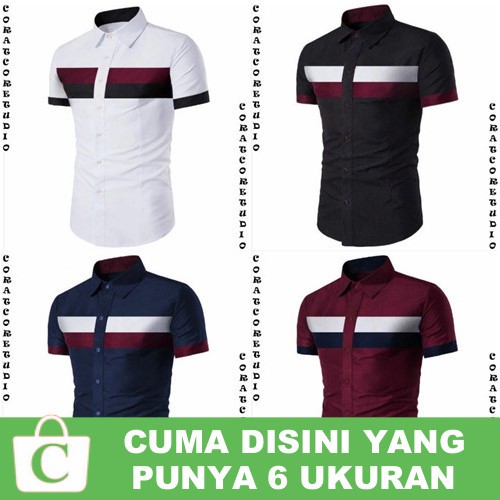 Promo Diskon6 UKURAN - Kemeja Pria Hem Cowok Polos Lengan Pendek Dada PUTIH HITAM BIRU MERAH - CORAT CORET sayang jika tidak diambil