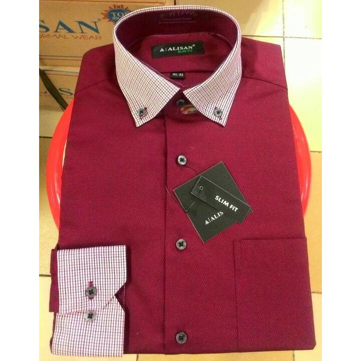 Promo MenarikProduk Terbaru Kemeja Pria Alisan Panjang Slimfit Maroon Merah Kerah Kotak Fancy Gratis Ongkir ayo segera dibeli