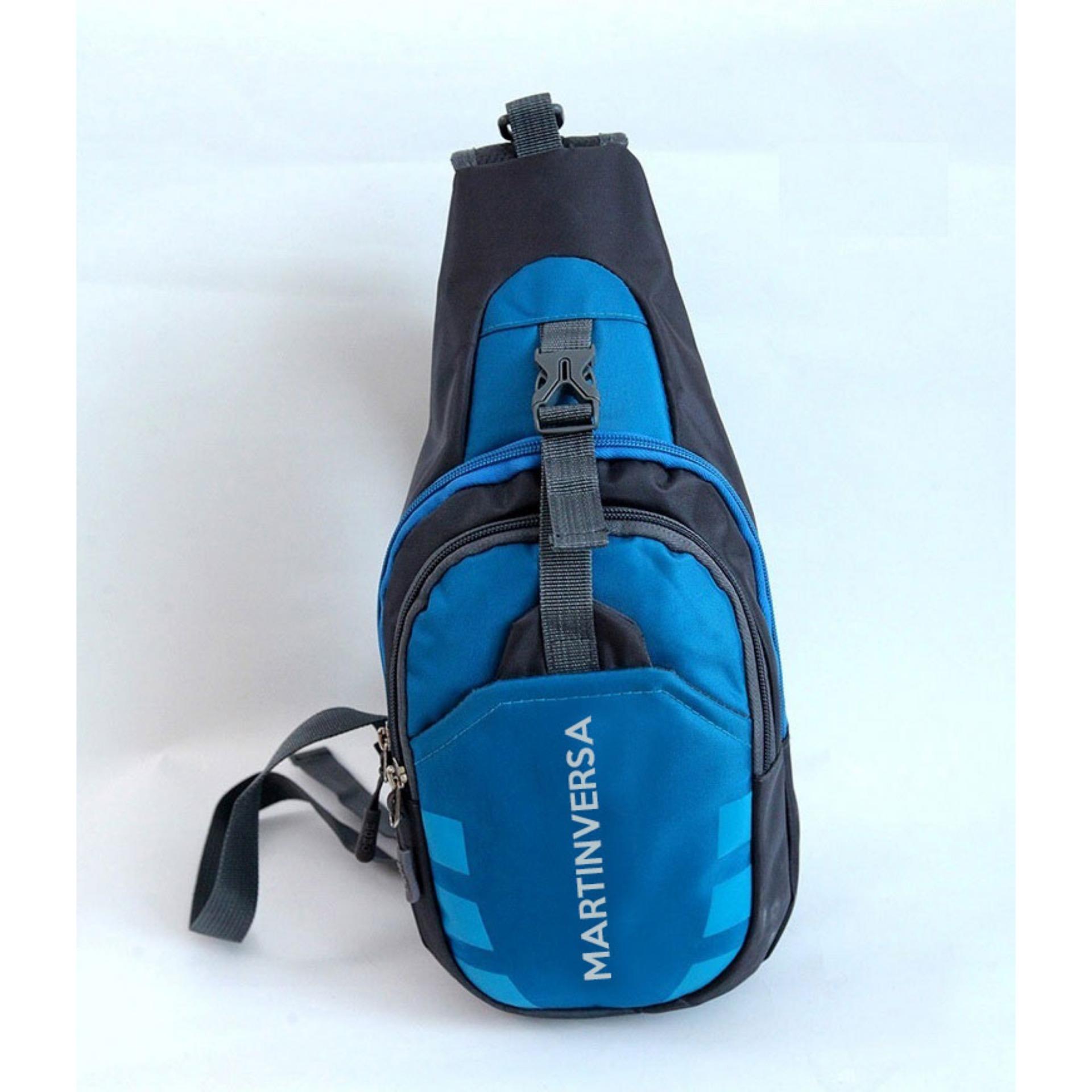 Produk Yang direkomendasikan terkait CH8 Tas selempang pria wanita kanvas nylon canvas mens woman chest pack crossbody sports sepeda sling bag slingbag - Blue / Biru