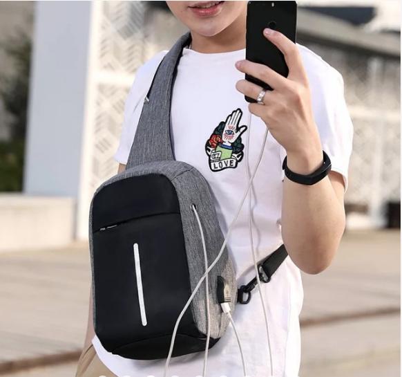 Tas Model Anti Theft versi Crossbody Sling Bags adalah tas exclusive khusus traveler dengan model selempang agar nyaman dalam berpergian tanpa harus takut oleh kemungkinan pencurian dan ketika hujan. Tas ini juga dilengkapi dengan USB pada sisi sampingnya bisa untuk charge HP dan mendengar musik dengan bantuan lubang earphone untuk kabelnya serta tambahan saku resleting di tali selempang